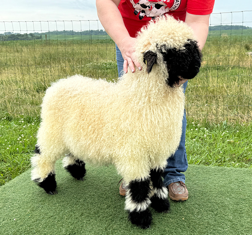 🏆Award-Winning Wether! Overall Champion Wether! … IOWA MOWGLI! Check out this handsome fella! Picture perfect PUREBRED Valais Blacknose! Mowgli was the Champion Purebred Wether and Overall Champion Wether at the 2025 USA National Valais Blacknose Sheep Show, Des Moines, Iowa. Wethers are friendlier and make great pets! Mowgli would love to be your spoiled pasture pet and beautiful lawn ornament. He would also make a great companion for another sheep. 🤩Better yet, make him your PR spokesman and show him off at public events! If you don’t, we will!