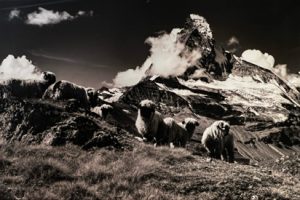 The Blacknose sheep originates from the Valais canton of Switzerland. Native to the Upper Valais region, the Blacknose graze in the Alps in the summer months June-September. Though housed through the winter, the Blacknose is a sturdy breed which is well adapted to the harsh conditions of the mountains, which can be endured even in the summer months.